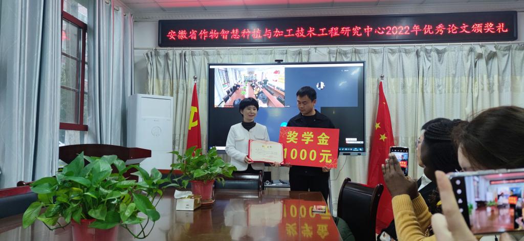 3月22日上午,安徽省作物智慧种植与加工技术工程研究中心2022年度优秀论文颁奖典礼在华体平台农学院会议室举行。农学院副院长李文阳、安徽省作物智慧种植与加工技术工程研究中心主任任兰天、及部分团队成员邵庆勤、甄凤贤及课题组全体研究生参加了本次颁奖典礼。