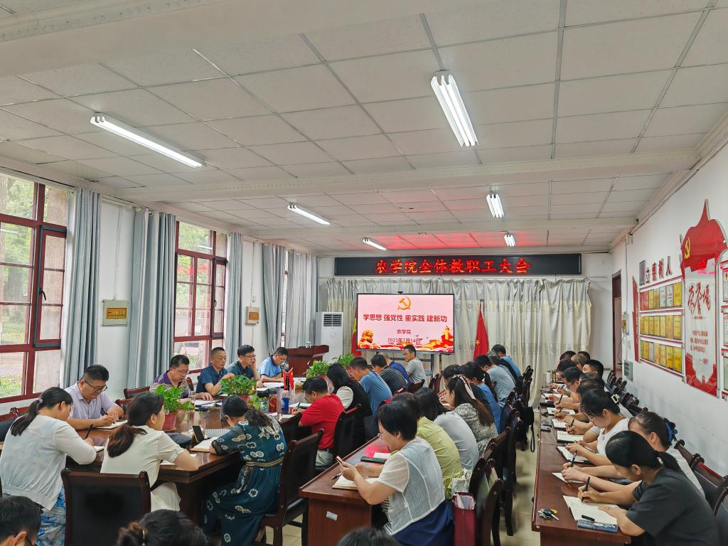 7月14日上午,农学院在学院会议室召开全体教职工大会,总结本学期各项工作开展情况,部署安排暑期重点工作,推进2023年度学院目标任务向前发展。学院主要党政领导及全体教职工参加会议。会议由党委书记何世潮主持。