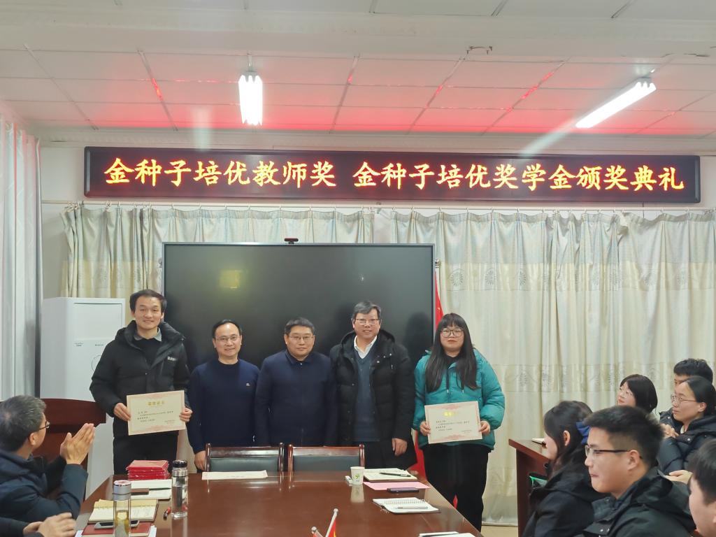 1月11日下午,“金种子培优基金”2023年度“金种子培优奖学金”“金种子培优教师奖”颁奖仪式在农学院会议室隆重举行。学校党委委员、副院长李升和,上海景领投资管理有限公司合伙人、基金发起者黄宪先生,二级教授、基金发起者农学院黄先忠老师,农学院党委书记何世潮,副书记张轶辉,副院长舒英杰和李文阳以及教师代表和学生代表出席颁奖仪式。根据《华体平台农学院“金种子培优基金”申报细则》和申报人申请,经“金种子培优基金”评审委员会评审,李瑞宁、艾昊两位青年教师荣获金种子培优教师奖,孙张论、李婷、杜孟祥、杨德坤和王静婷五位农艺与种业专业研究生荣获金种子培优奖学金。颁奖仪式由农学院党委副书记、院长崔广荣主持。