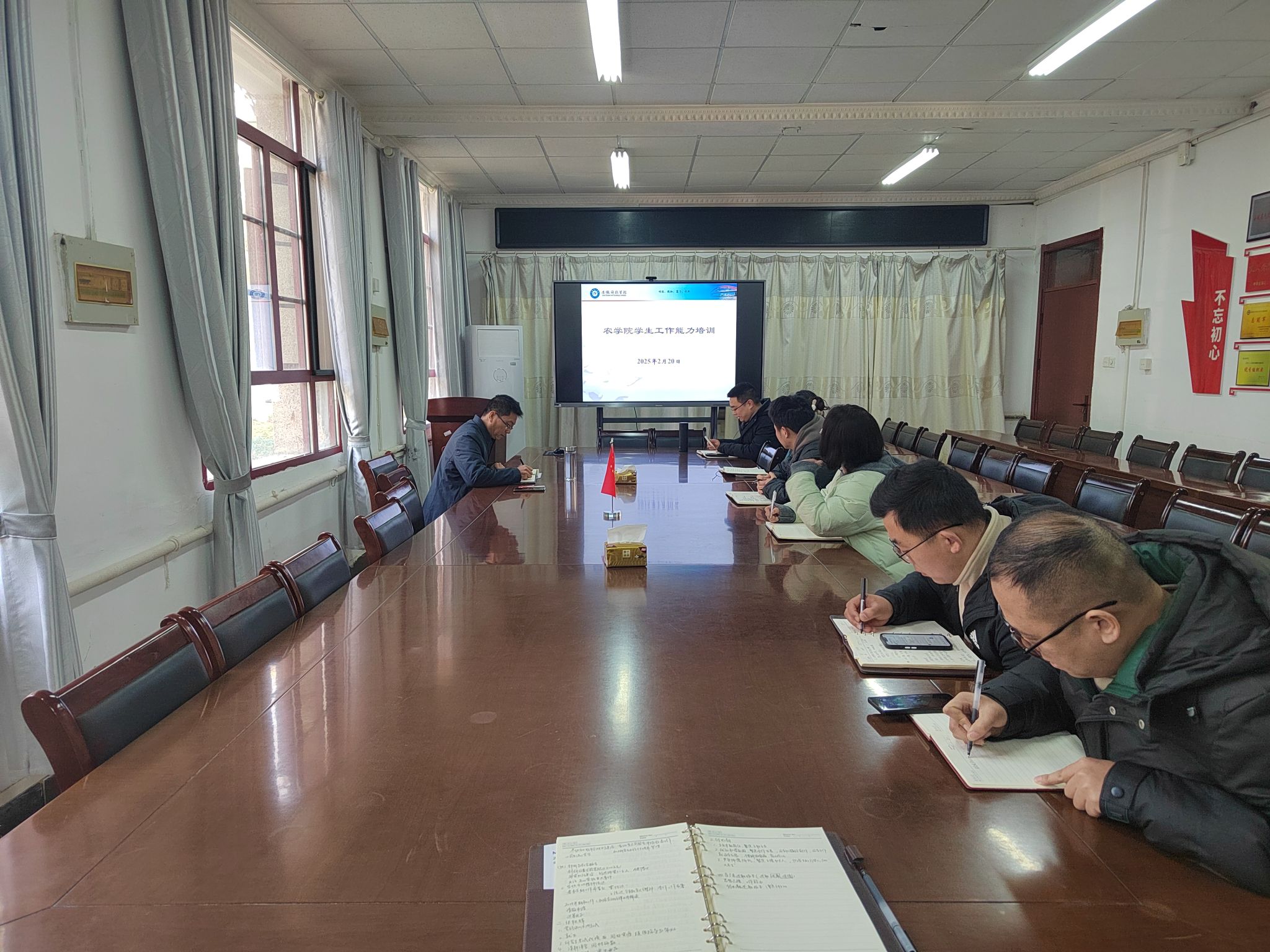 为进一步加强学工队伍建设,提升学生思政教育和管理能力和水平,2月20日下午,农学院召开专兼职辅导员工作例会,并邀请农学院党政办副主任汪道兵老师进行专题培训。农学院全体专兼职辅导员参加,会议由农学院党委副书记张轶辉主持。