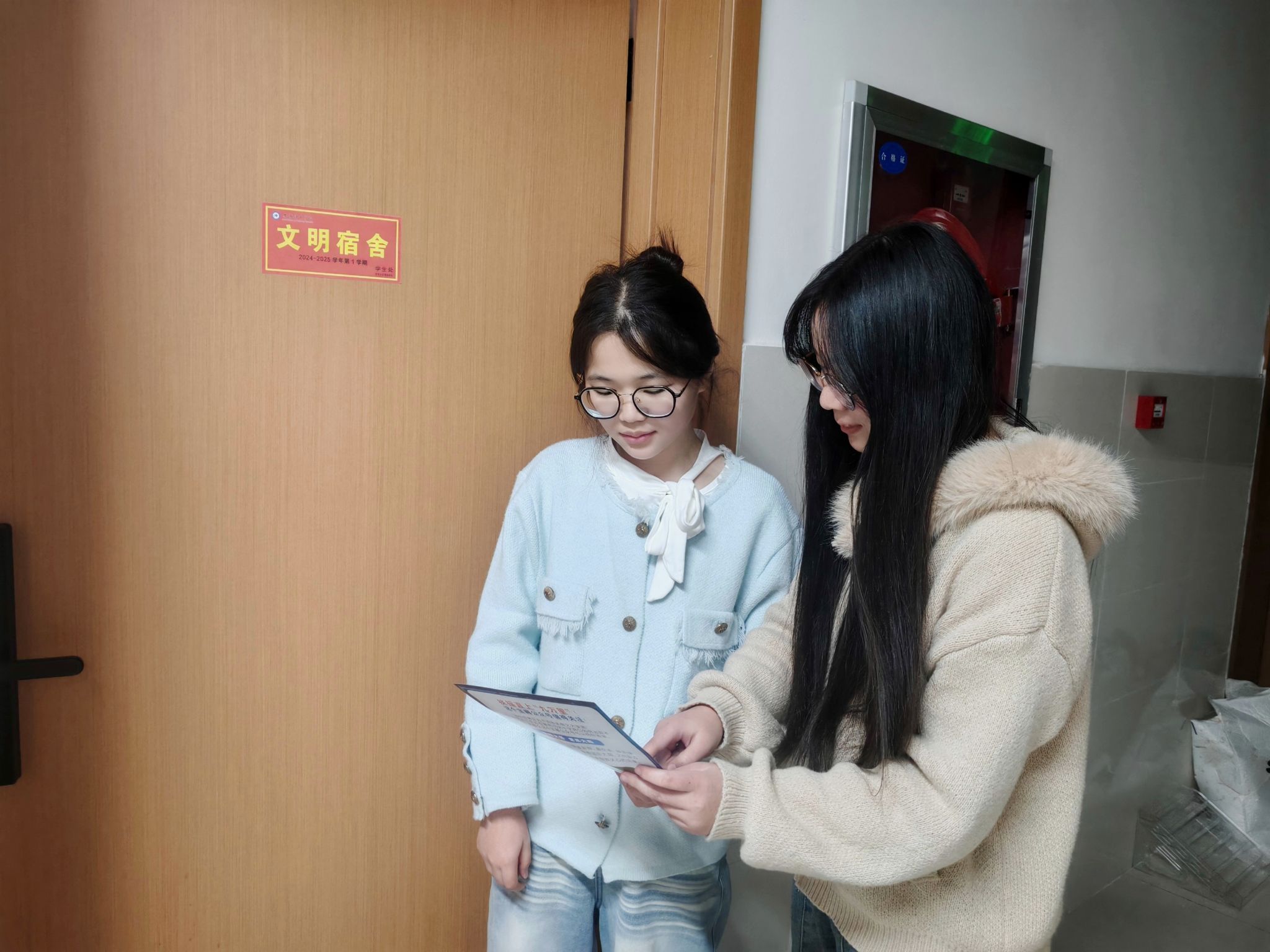 学院学生会工作人员围绕用电安全、个人信息保护等实用知识,走进学生宿舍开展“点对点”宣传。“一对一”的精准沟通将宏观安全理念转化为具体生活指引,让抽象规定变得可知可感,将安全意识传递至每一位同学,为校园安全筑牢坚实基础。(特约通讯员:焦雪松 摄影:胡雅琦 丁善美 汪航 史琳婷 一审:焦雪松 二审:李沙娜 三审:张严政)