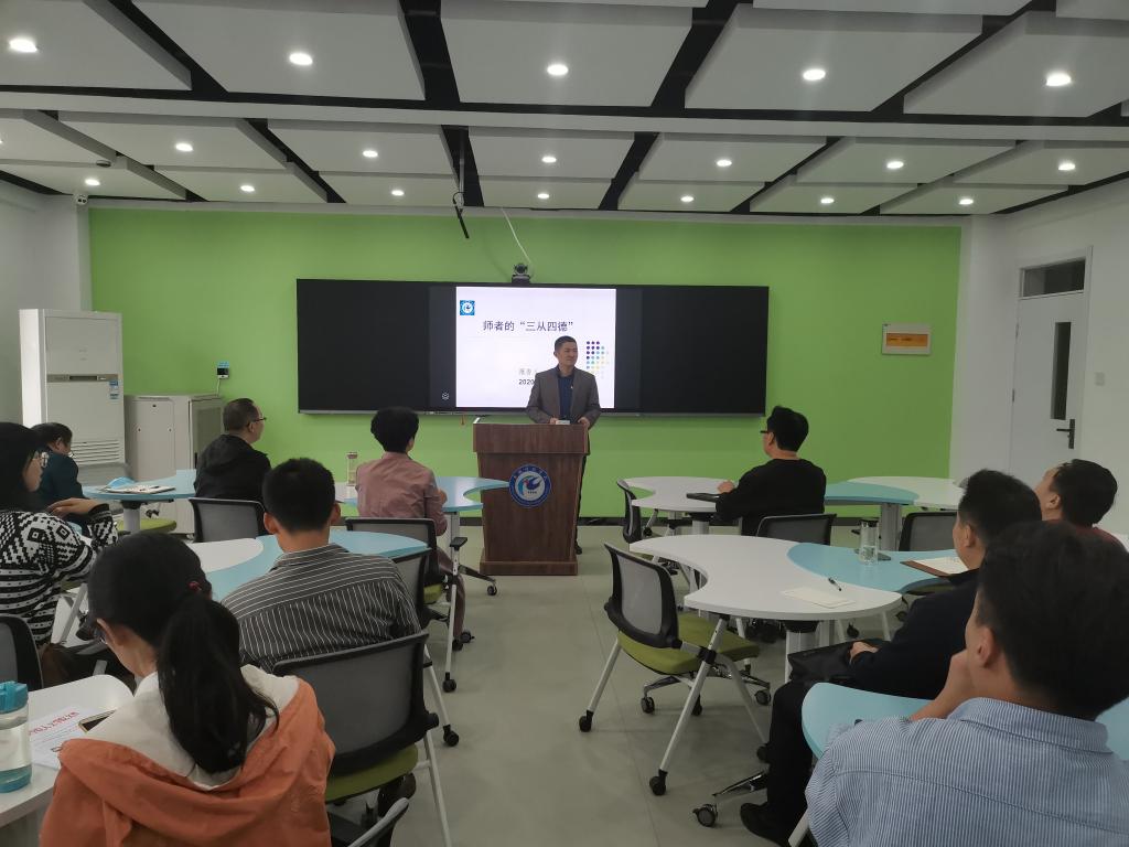 姚大怀以古代女子的“三从四德”引入话题,结合自身教学、科研经历提出师者的“三从四德”,他指出作为一名新时代的党员教师应该服从组织安排、听从合理建议、遵从初心召唤,积极树立从教之德、为学之德、做人之德、处事之德。他强调教师党员必须发挥党员的先锋模范作用,努力做教育改革的奋进者、学生成长的引导者,为祖国下一代健康成长作出自己的贡献。