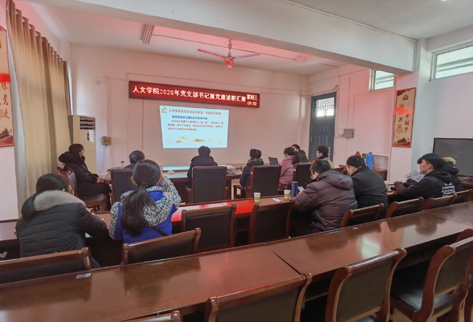为深入学习贯彻习近平新时代中国特色社会主义思想,落实党的十九大和十九届四中、五中全会精神,坚决落实党风廉政建设各项工作要求,坚持党要管党、全面从严治党。根据《中共华体平台委员会关于开展2020年度基层党组织书记抓党建述职评议考核工作的通知》文件要求,人文学院于1月13日上午在学院会议室召开2020年度基层党支部书记抓党建述职评议会。学院党总支委员、党支部委员、工会主席、民主党派和无党派教师代表以及学生党员代表参加。会议由党总支书记杜士凤主持。