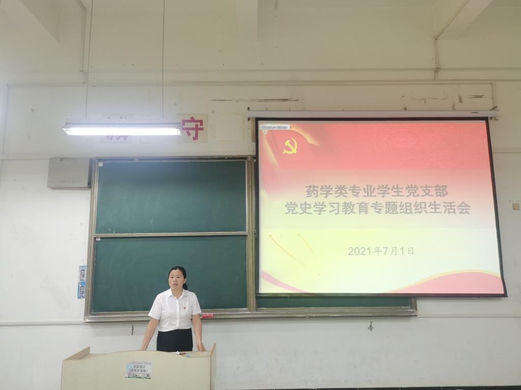 为进一步学习贯彻习近平新时代中国特色社会主义思想,深入开展党史学习教育,7月1日下午,药学类专业学生党支部在求知楼A105召开党史学习教育专题组织生活会,党支部全体党员参加会议,会议由党支部书记姜毅主持。
