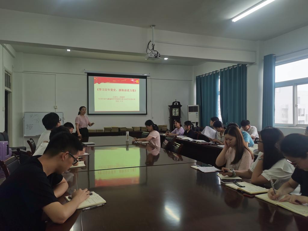 为教育引导学生党员学史明理、学史增信、学史崇德、学史力行,切实增强“四个意识”、坚定“四个自信”、做到“两个维护”,7月8日上午,生命与健康科学学院药学类专业学生党支部在学院会议室开展“学习百年党史,汲取奋进力量”党课学习活动。党课由学院党委副书记彭丽萍主讲。