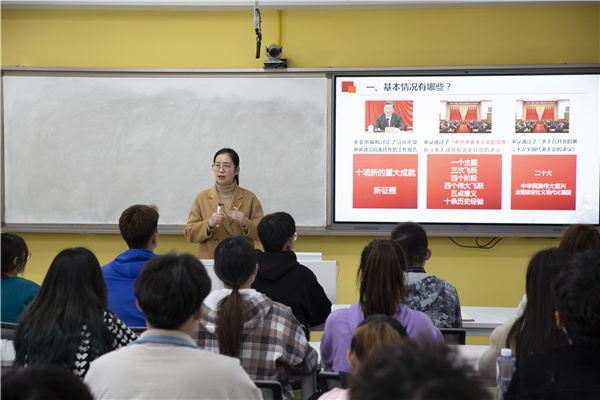 为深入学习贯彻党的十九届六中全会精神,高质量、高标准地推进党史学习教育和学院结对共建走深走实。3月9日下午,生命与健康科学学院特邀马克思主义学院赵仁青副教授以《不忘初心、牢记使命——学习贯彻党的十九届六中全会精神》为题,在求知楼B307为生命与健康科学学院生物类专业学生党支部、药学类专业学生党支部师生党员讲授了一场内涵深刻、内容丰富的专题党课。宣讲会由生命与健康科学学院正科级辅导员、正科级组织员邓艳萍主持。