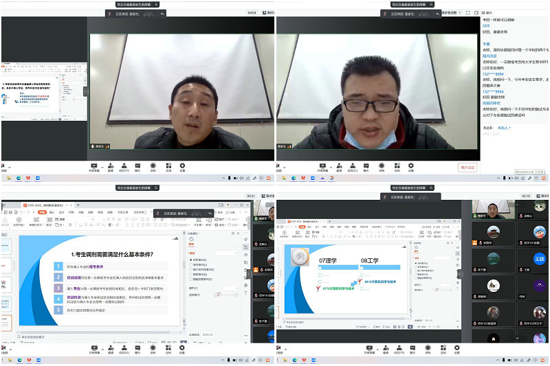 精准施策,服务考研需求。从公布初试成绩、国家线,到开展复试和调剂工作,结合不同阶段的考生需求,学院领导老师科学谋划,针对性开展工作,为考研复试提供强有力的支持和保障。3月29日,生命与健康科学学院借助腾讯会议平台举办2022年硕士研究生复试以及调剂政策解读线上讲座,讲座特邀安徽农业大学研究生院副院长姜家生为学院2022年研究生招生考试达国家线的同学进行了线上辅导,就复试调剂、面试技巧、院校调剂、联系导师等问题进行全面细致的解读。同时,学院结合实际情况、学科特色和专业实际,动员专业教师、辅导员、校友等多方力量,打出考研服务“组合拳”,全力服务考研学子。