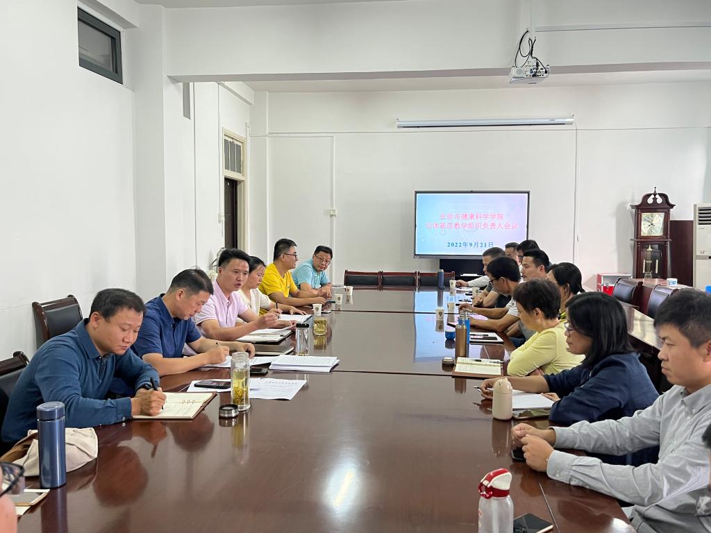 为加强学院基层教学组织建设,全面提升学院基层组织效能,生命与健康科学学院于9月21日下午在学知楼417会议室召开了全体基层教学组织负责人会议。学院党委书记詹学文,党委副书记、副院长(主持工作)孙玉军,党委副书记、纪委书记彭丽萍,党委委员、副院长钱立生以及全体基层教学组织负责人参加会议。会议由钱立生主持。
