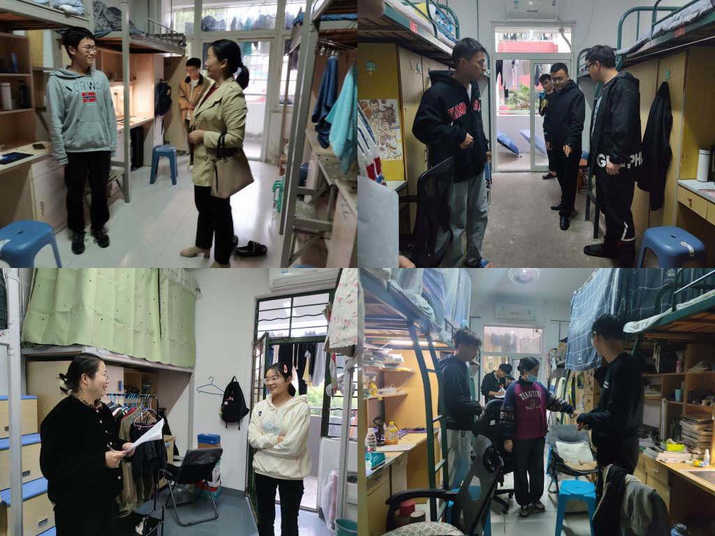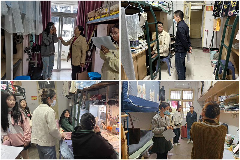 期间,老师们走访到学院每个宿舍,亲切关心每位同学的住宿生活情况,认真排查宿舍设备是否存在损坏、异常等安全问题,坚决杜绝在宿舍私藏违规电器、违规物品的情况,着重强调了宿舍安全用电问题,要求同学们认真遵守省教育厅关于学生公寓“六个严禁”,走访过程中,老师们和同学亲切交流,了解关心同学们在宿舍里的生活习惯、人际关系等情况,耐心询问他们在生活、学习里遇到的问题,并给予建议。同学们也积极配合安全卫生检查工作,对照文明宿舍创建标准查缺补漏,积极整改。