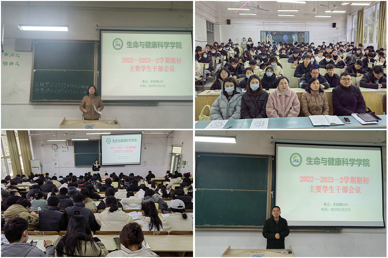 为促进新学期各项工作的开展,2月21日中午,生命与健康科学学院于求知楼A101教室召开期初主要学生干部会议。学院党委副书记、纪委书记彭丽萍,党政办公室主任王传林,正科级辅导员兼正科级组织员邓艳萍,团委副书记姜毅以及全体辅导员出席本次会议,各班级班长、团支书、学习委员和各学生组织负责人参加会议。会议由副科级辅导员刘国祥主持。