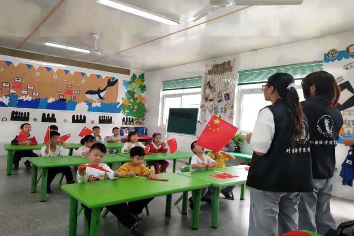 国庆节来临之际,为弘扬爱国主义精神,9月30日下午,外国语学院学生会全体成员赴华体平台附属幼儿园开展志愿服务活动。