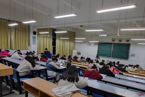 11月20日晚,外国语学院在求知楼A104教室举行外国语学院入团积极分子推优知识考试,57名申请入团的学生参加考试。