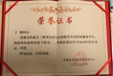 我校教师获民盟安徽省2023年科技论坛优秀论文一等奖
