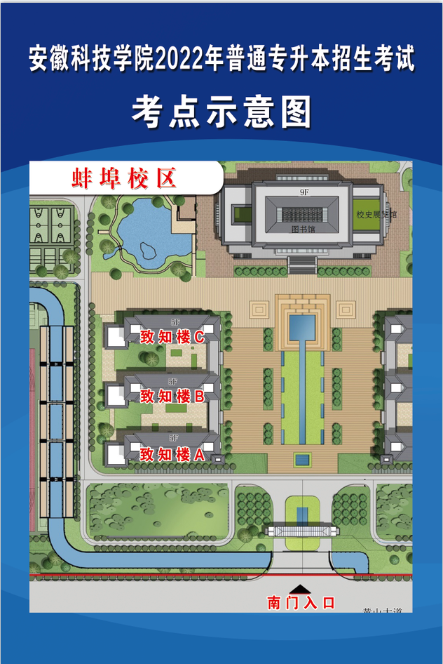 华体平台2022年普通专升本招生专业课考试将于7月3日在学校蚌埠龙湖校区举行,考生可于上午7:50从学校南门进入校区。根据疫情防控要求,请考生做好个人防护,带好口罩,与他人保持合理间距,减少近距离接触和交流。入校时请配合工作人员核验安康码、行程码、核酸检测阴性报告,体温测量、身份核验,提交《华体平台2022年普通高校专升本招生专业课考试考生健康承诺书》。入校后到指定考场等候考试开始(考点示意图如下),考生如出现安康码异常等情况,请提前和我校招生办公室联系0550-6732178,6733934。请考生认真阅读准考证考生守则,遵守考场纪律。