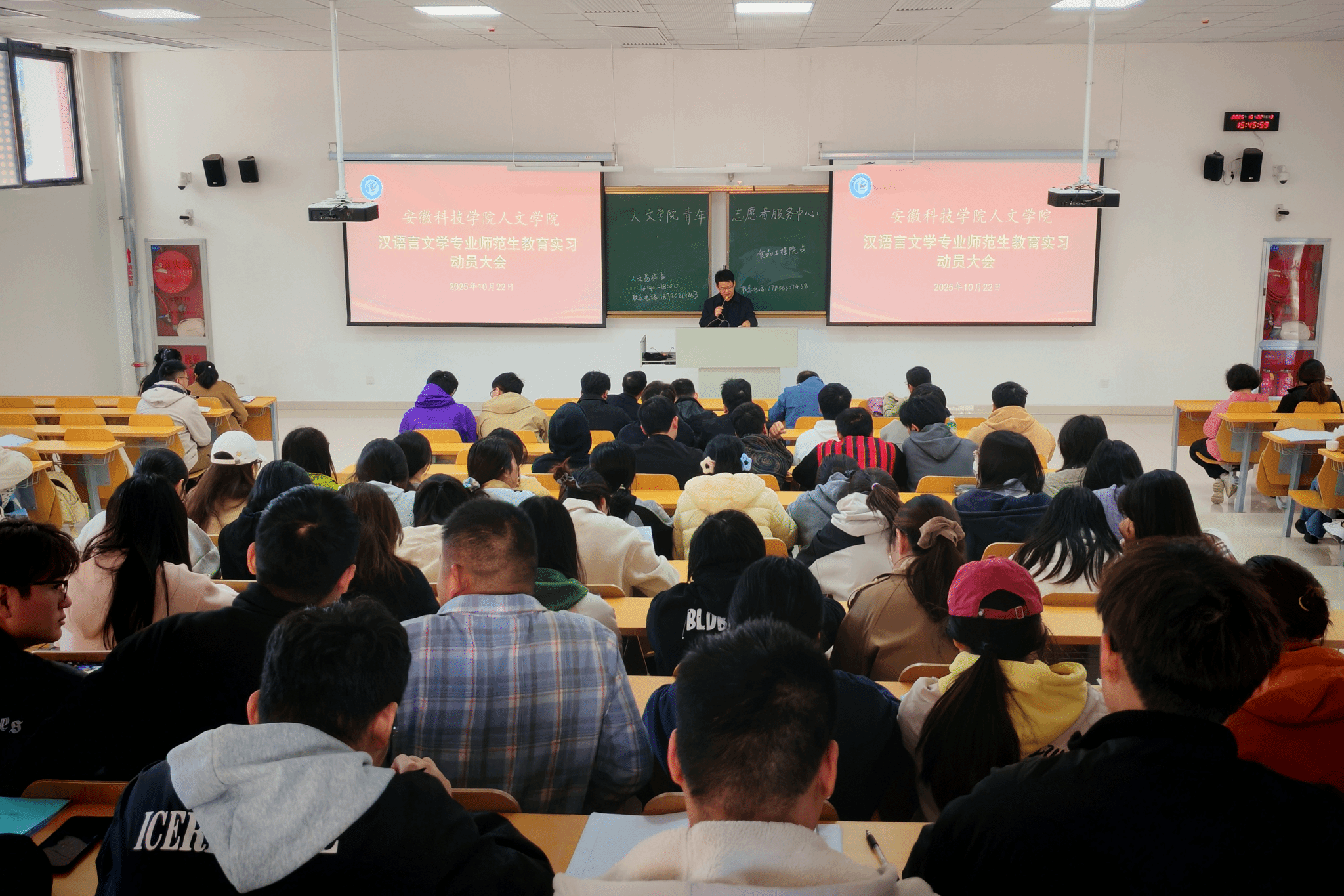 10月22日下午,人文学院在学思楼4号楼108教室召开2022级汉语言文学专业学生教育实习动员大会。人文学院副院长牛永辉、党政办公室副主任方明旺,中文系全体教师及2022级汉语言文学专业全体学生参加会议。动员大会由中文系副主任曹宋艳主持。