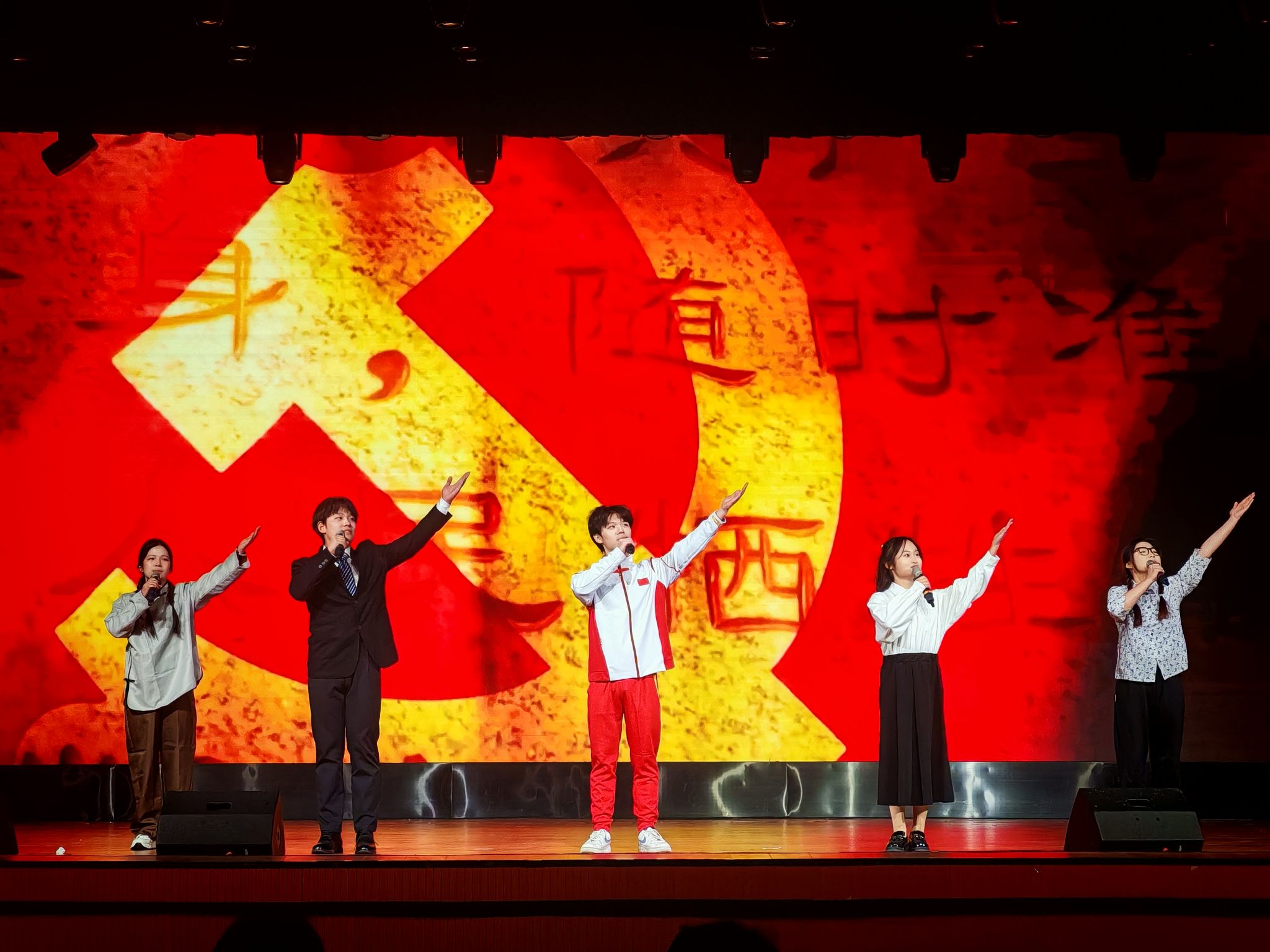 弦音绕画梁,舞影弄清裳。节目由精彩的幕布剧拉开序幕,踩着青春的鼓点进入晚会的氛围。舞蹈《Forever》的旋律响起,舞者的身姿行云流水,从舒缓的滑步到激昂的跃动,光影交错;法律小品《我的老爸爸》温馨动人,如暖流浸润人心;朗诵《那一年 中国青年正十八》抑扬顿挫,如洪钟震响,似鹰击长空;舞蹈串烧与歌曲串烧带领观众感受多元律动的旋律,舞蹈《Shooting star》让观众目醉神迷、意犹未尽;话剧《见朝曦》剧情跌宕起伏,演员台词如珠落玉盘,演出千般情绪、脉脉动人;《稻香》一曲合唱亲切温馨,拉下晚会的帷幕。
