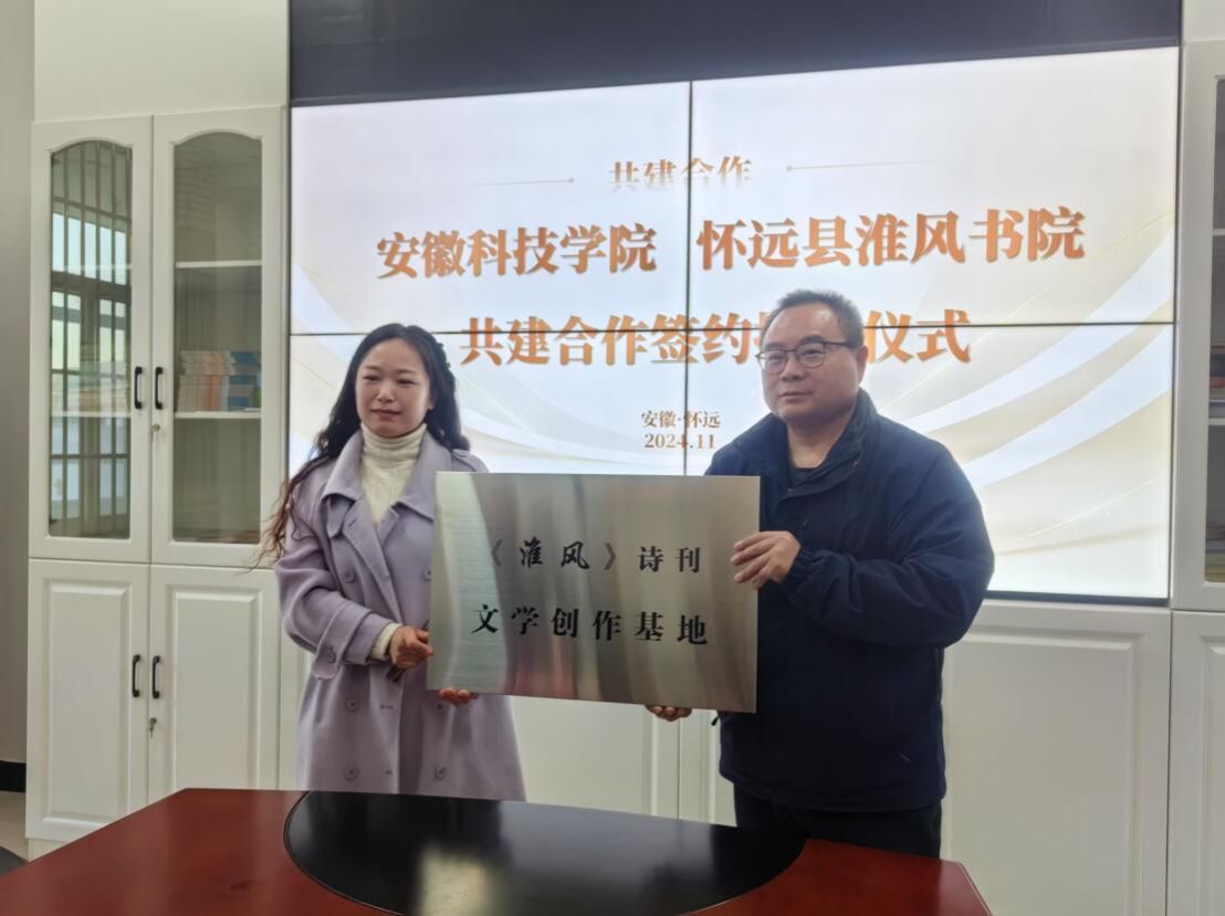 11月29日下午,华体平台与淮风书院在怀远县统战文化园举行共建合作签约暨授牌仪式。人文学院党委副书记、院长李晓东、正处级组织员张严政、中文系主任苏兆龙,淮风书院院长、《淮风》诗刊主编宫蔚国、编委潘洪波及怀远县地方文化学者苏文科、科普摄影家学会会长王智祥等出席本次活动。