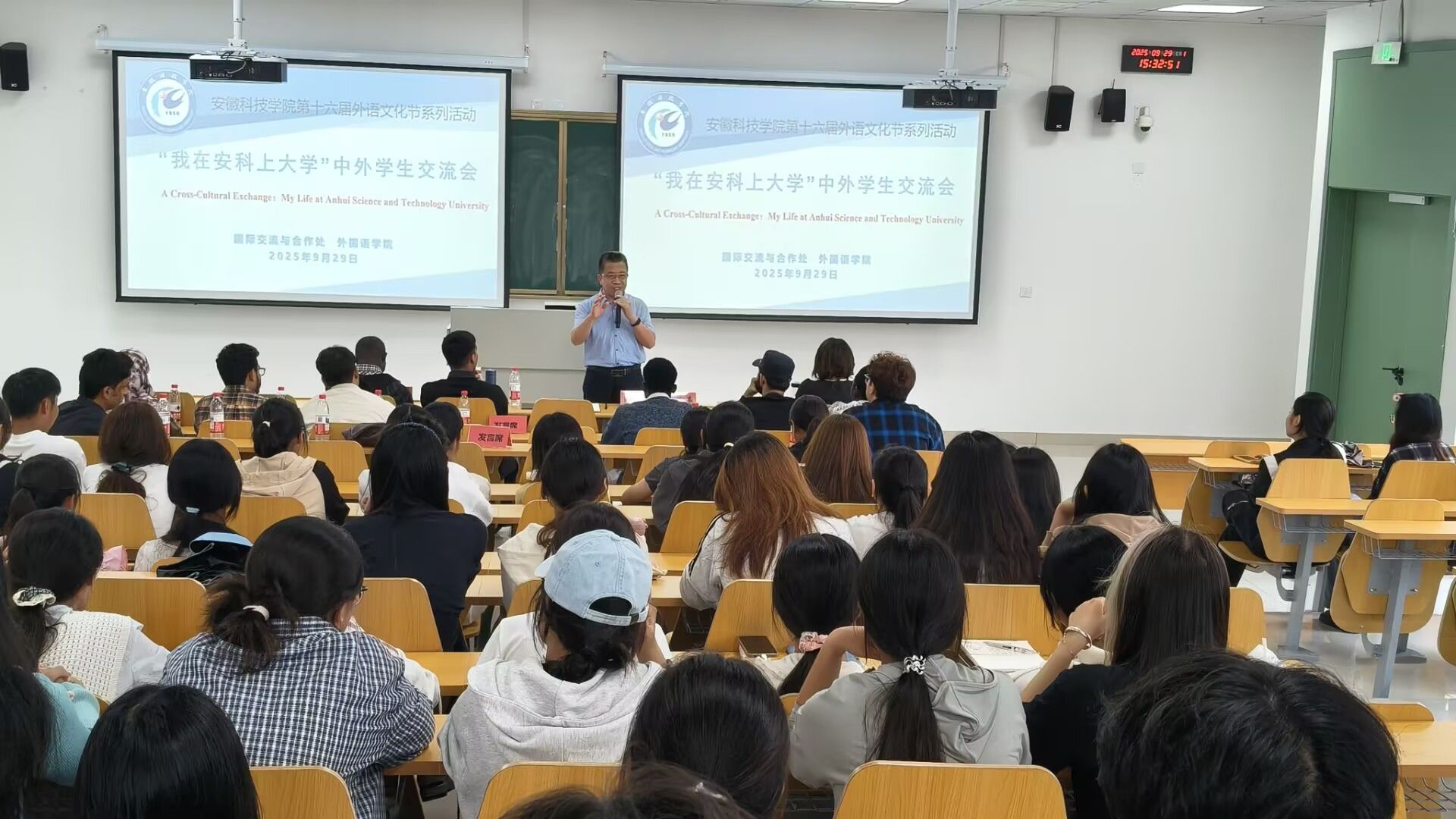 9月29日下午,华体平台第十六届外语文化节“我在安科上大学”中外学生交流会在滁州校区学术报告厅举行。国际交流与合作处处长何世潮、外国语学院党委书记蔡为青、副书记张海亮出席,150余名中外学子参与交流。