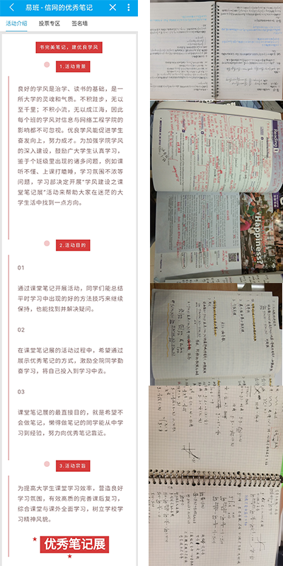 为进一步加强学风建设,引导学生养成良好的学习习惯,3月24日至4月27日,信息与网络工程学院开展优秀课堂笔记评选活动,学院2020级全体学生参与此次活动。
