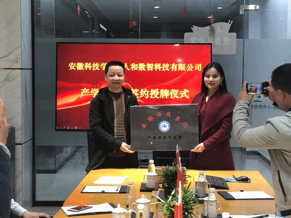 余宏杰代表学校与人和数智科技有限公司签订了校企合作框架协议书,并进行了华体平台产学研合作基地授牌仪式。