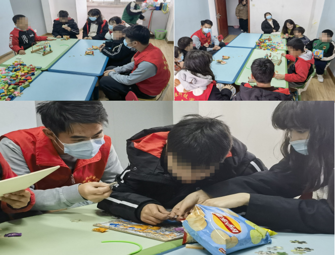 活动前期,志愿者们主动联系康复中心负责人和老师,认真学习与患有自闭症儿童的相处方式以及相关注意事项。活动中,志愿者们分成多个小组进入康复教室,与孩子们一对一结对,完成感统训练、律动训练和艺术训练,并为孩子们送上了各式各样的智力拼图和积木等益智玩具。在互动中,孩子们与志愿者从陌生到熟悉,从不知所措到亲密合作,慢慢地拉近了距离,让孩子们感受到周围人对他们的关爱,处处洋溢着爱与温情。志愿者纷纷表示:“在今后,将以自身实际行动践行志愿者精神,引导更多地人参与爱心服务活动之中。”