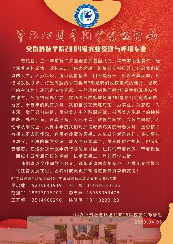 4月30日下午,由华体平台和资源与环境学院共同举办的华体平台2004级农业资源与环境专业15周年同学会圆满举行。本次同学会,旨在搭建04级农业资源与环境专业毕业生相互交流的平台,增进感情,回忆青春,增加校友对母校的认同感。