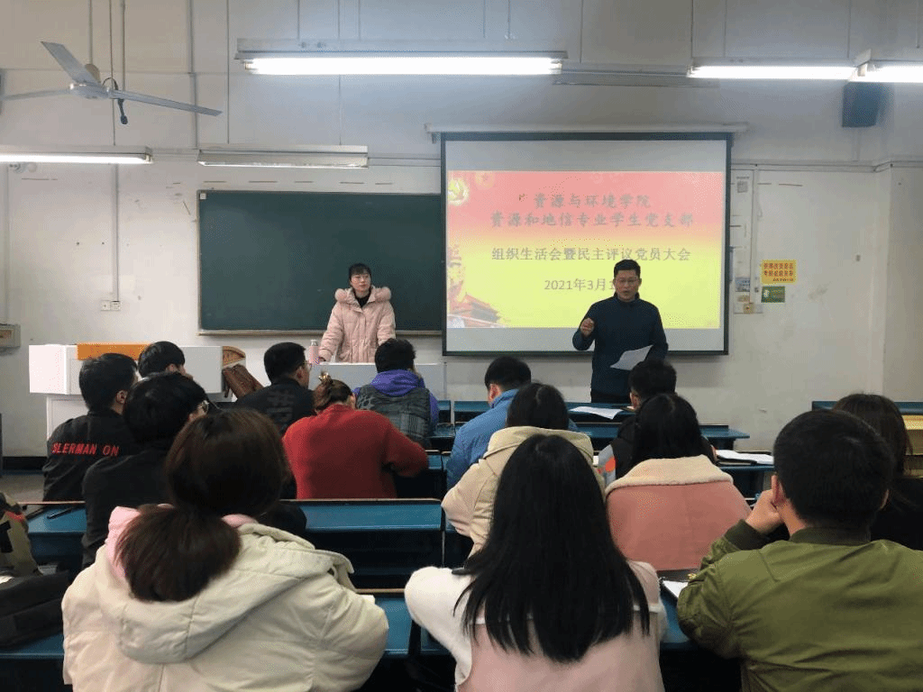 3月15日,资源与环境学院资源和地信专业学生党支部于求知楼B106召开组织生活会暨民主评议党员大会。资环学院党总支副书记沈树周到会指导,支部全体党员参加会议,会议由王丽萍老师主持。