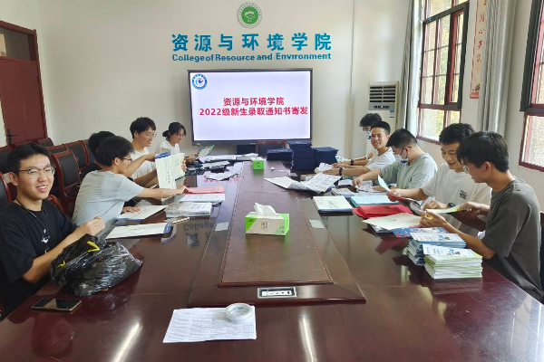 为全力做好服务新生工作,8月2日上午,资源与环境学院在学院会议室开启了2022级新生首批录取通知书寄发工作。学院党委副书记沈树周组织十余名暑期留校学生为新生寄发录取通知书。