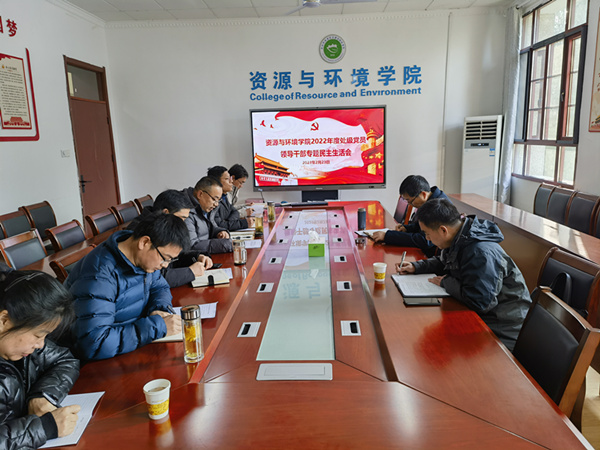 2月23日上午,资源与环境学院在学院会议室召开2022年度处级党员领导干部专题民主生活会。校党委研究生工作部、研究生处处长张春雨、校纪检监察室主任李忠到会指导。学院处级党员领导干部、党委委员、党员群众代表等参加会议。会议由资源与环境学院党委书记、院长李孝良主持。