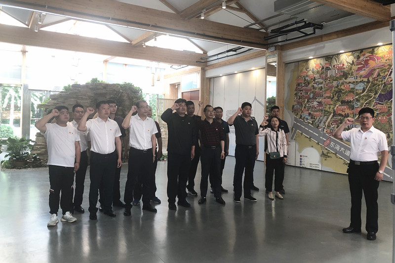 在学习馆大厅,全体党员面向党旗宣誓,重温入党誓词。全体党员高举右拳,面向鲜红的中国共产党党旗庄严宣誓,用铿锵有力的誓词表达对党的忠诚,时刻警醒自己,不忘初心、牢记使命。