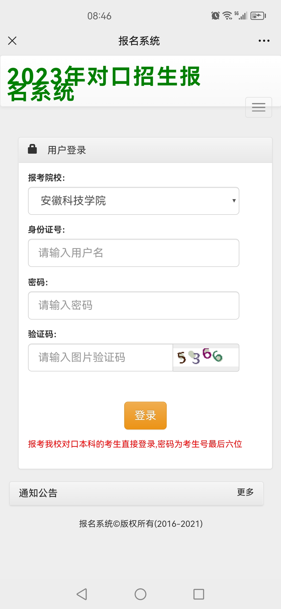 第三步:输入账号密码登录系统:账号:身份证号,密码:考生号后六位。